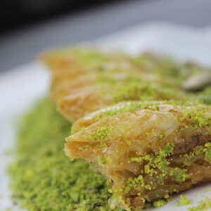 Müslüm Usta Dilber Dudağı Baklava; Ortalama 40 kat yufka kullanılarak hazırlanır. İçeriğinde, Gaziantep yöresinde yetişen, boz fıstık diye bilinen bol yeşil fıstık kullanılır. 180-200 derece fırında 35 dakika pişirilir.Raf Ömrü (Serin ve kuru yerde saklamak koşulu ile): 2 Gün İçeriği: Toz şeker, içme suyu, buğday unu, sade yağ, antep fıstık içi, buğday nişastası, yumurta, sofra tuzu